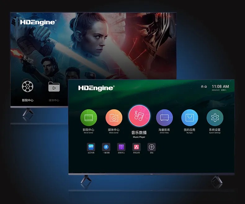 海缔力8K高端旗舰搭载了采用创新结构的Amlogic 12纳米工艺的S928X-K ARM A76+A55五核处理器,支持3D图形加速和VR视频播放,3.2TOPS强算力NPU,AI音画素质优化引擎。具有更大总线处理器能力,响应速度和运算更高效,同时兼顾了能效比;音画解码素质更强劲,成就卓越影音播放品质。